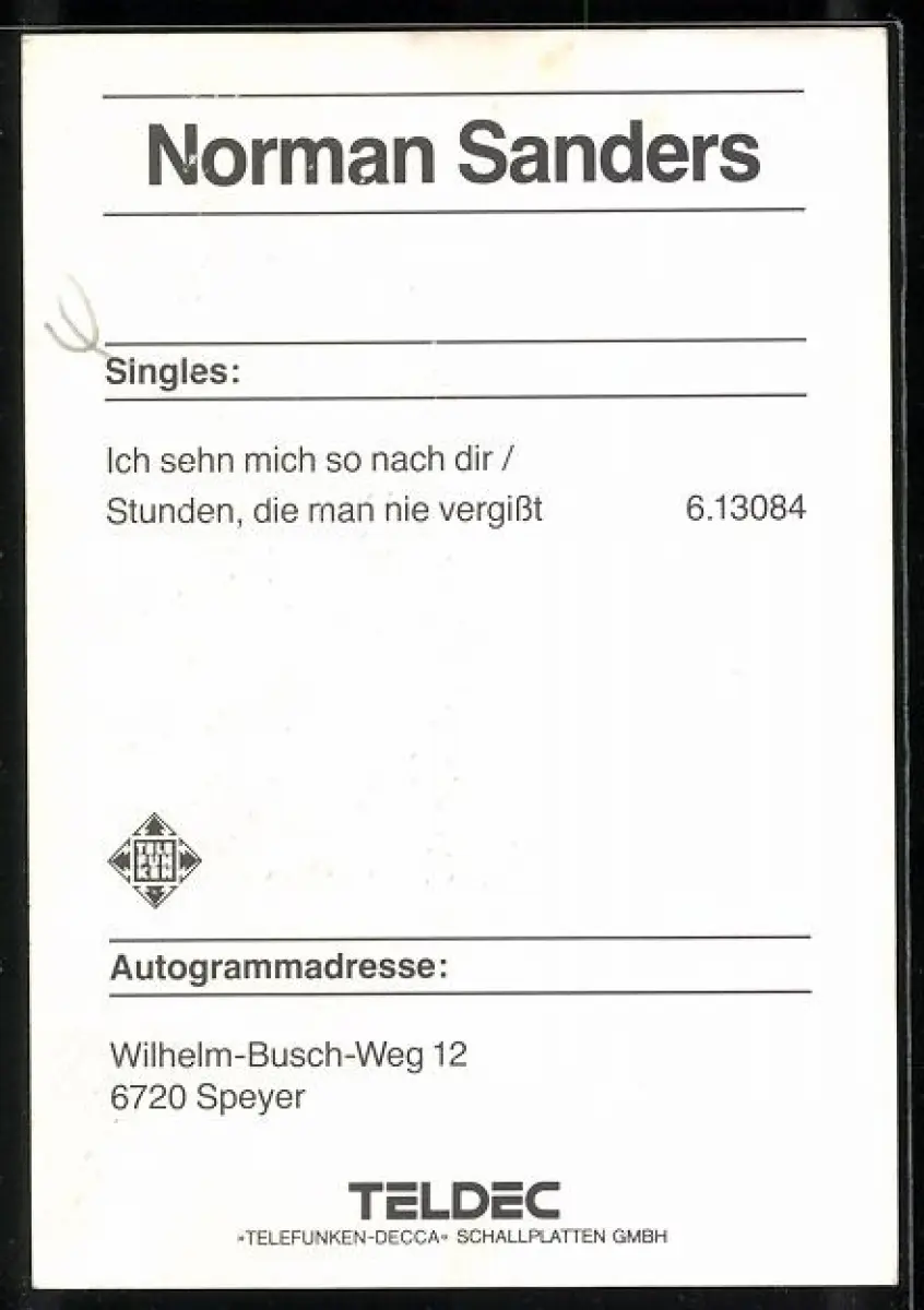 AK Musiker Norman Sanders mit Halskette posierend, Autograph