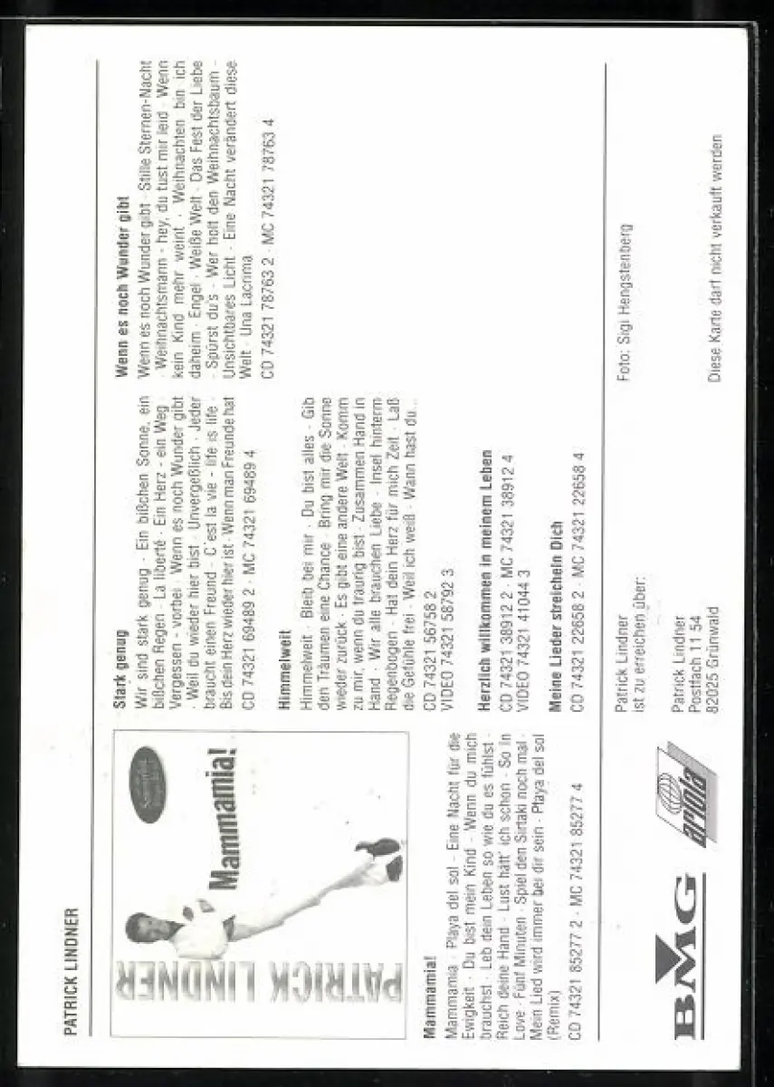 AK Musiker Patrick Lindner im weissen Anzug, Autograph
