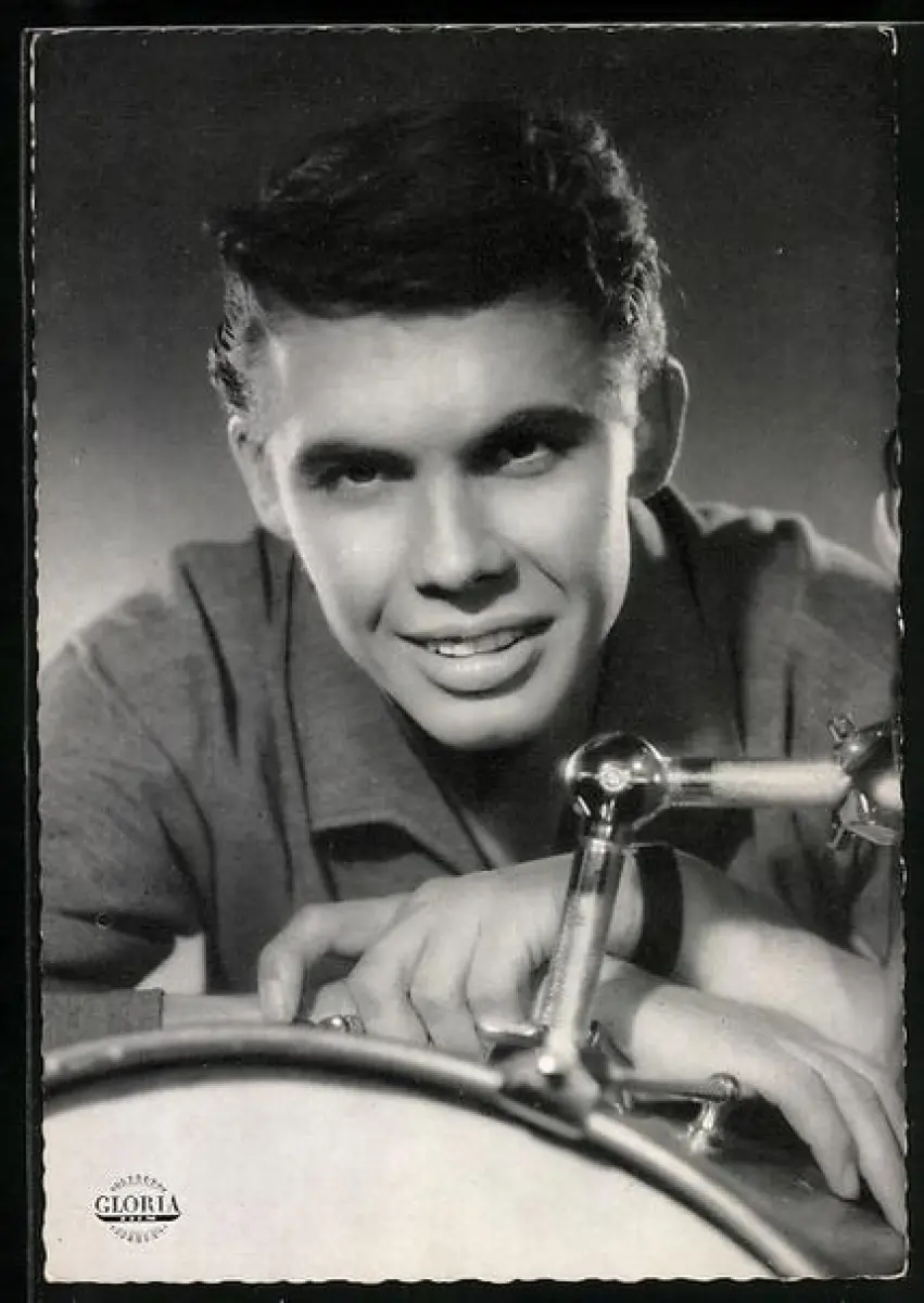AK Musiker Peter Kraus lehnt an einer Trommel