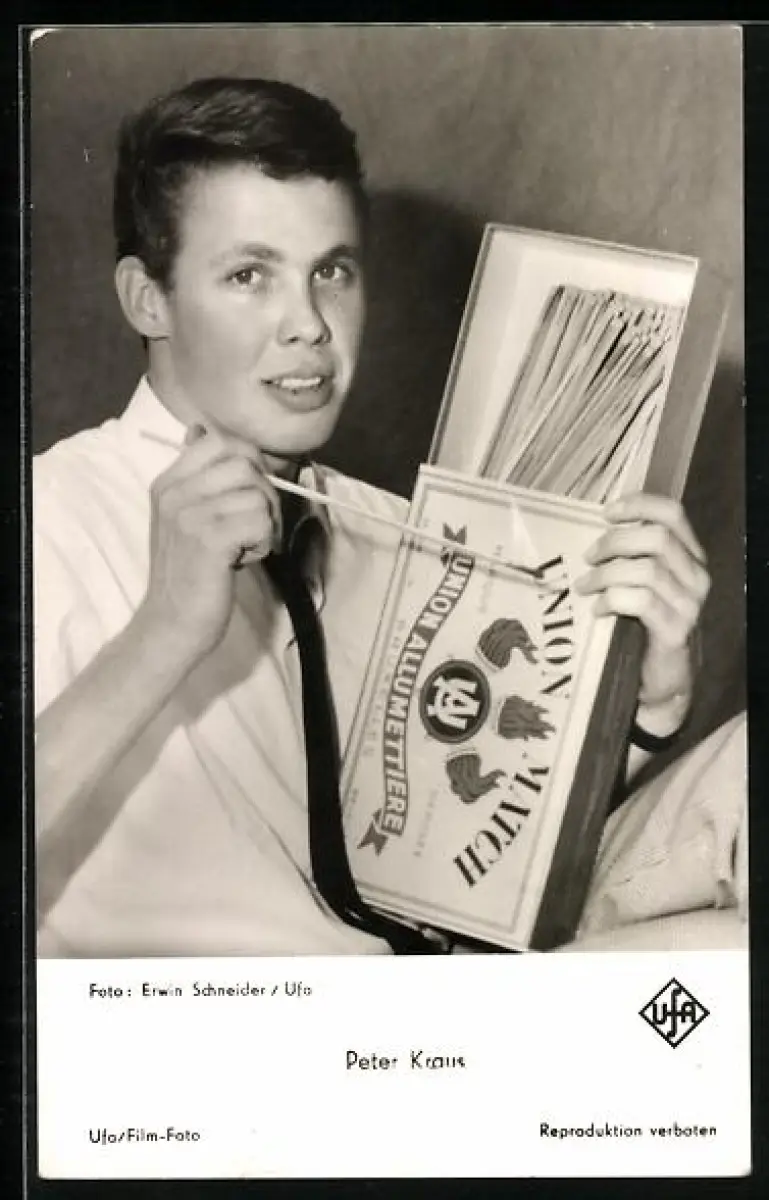 AK Musiker Peter Kraus mit grosser Streichholzschachtel