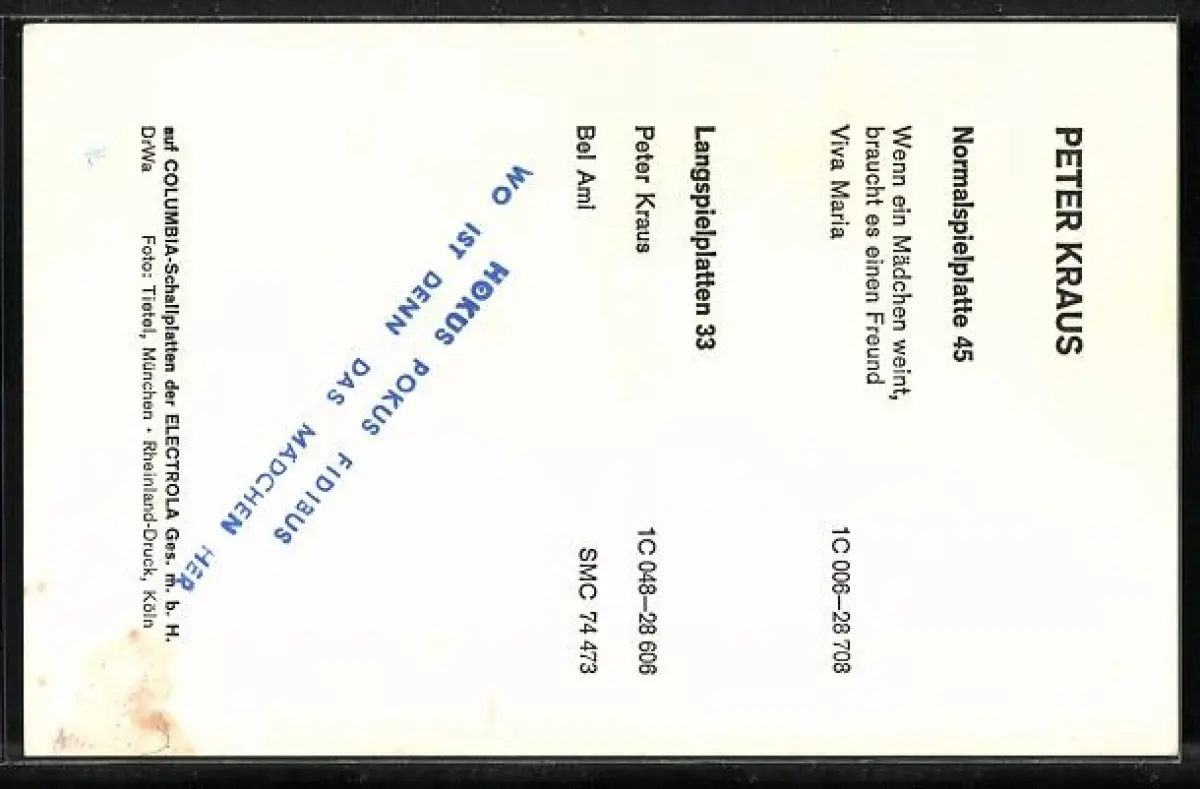 AK Musiker Peter Kraus mit nachdenklichem Seitenblick, Autograph