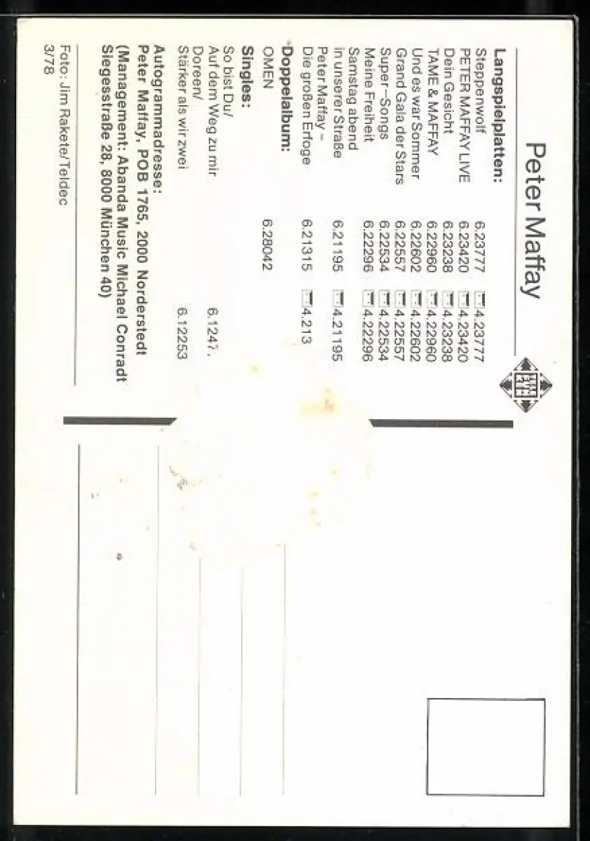 AK Musiker Peter Maffay mit verschränkten Armen, Autograph