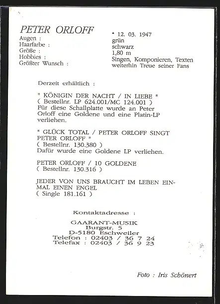 AK Musiker Peter Orloff in Jeansjacke, Autograph