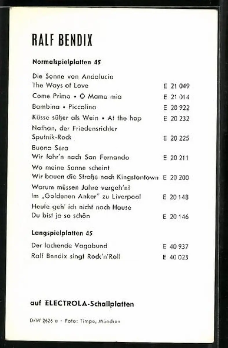 AK Musiker Ralf Bendix mit Brille zur Seite schauend, Autograph