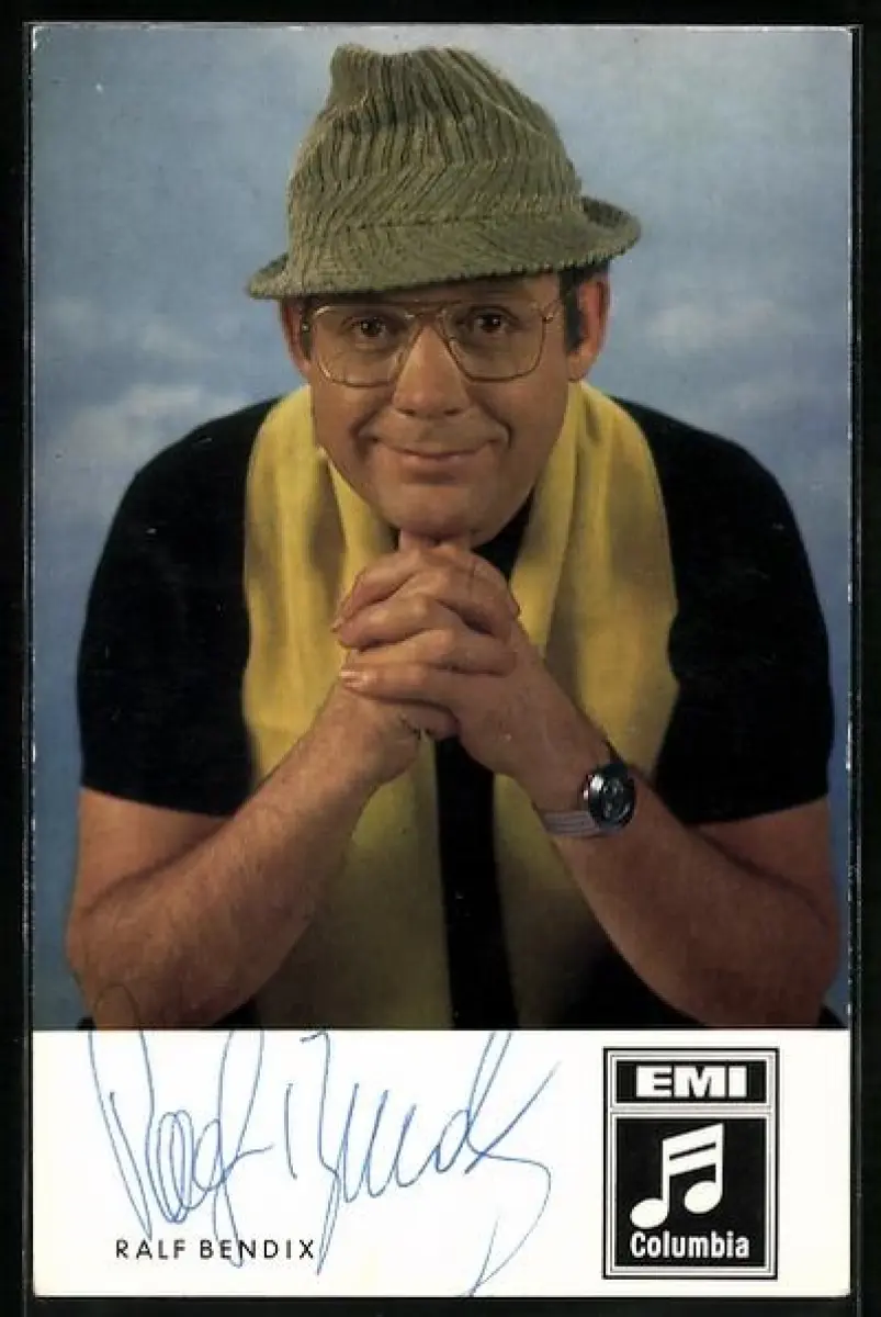 AK Musiker Ralf Bendix mit Hut und gelbem Schal, Autograph