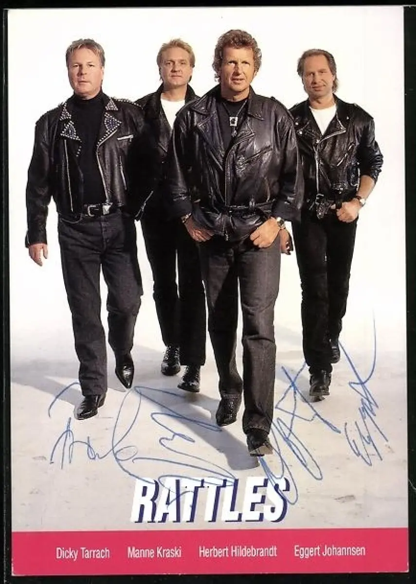 AK Musiker Rattles in Lederjacken und teilweise mit Cowboystiefeln