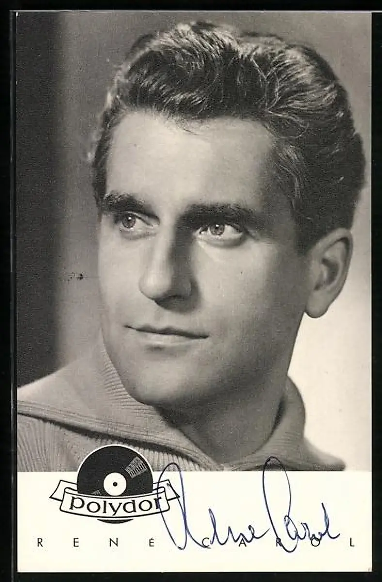 AK Musiker Renè Carol fragend zur Seite schauend, Autograph