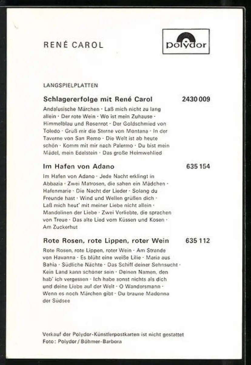 AK Musiker René Carol lächelnd im Porträt, Autograph