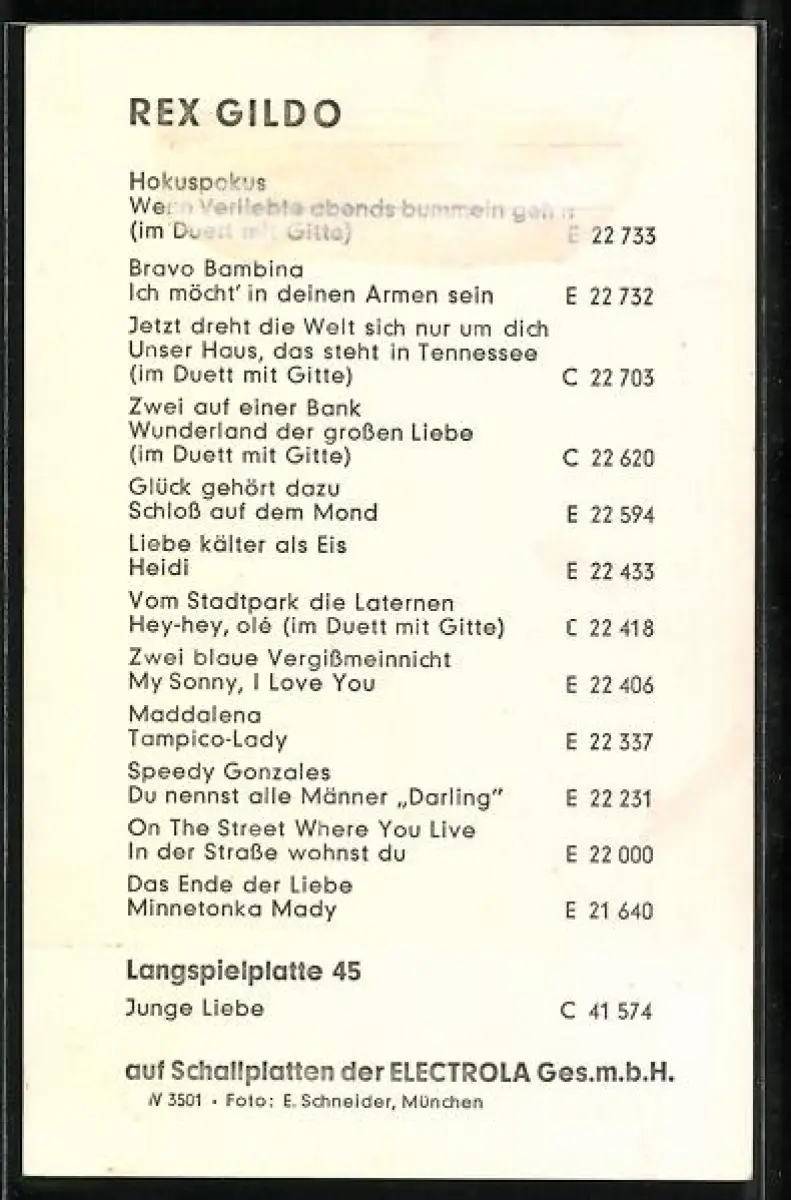 AK Musiker Rex Gildo in die Kamera schauend, Autograph
