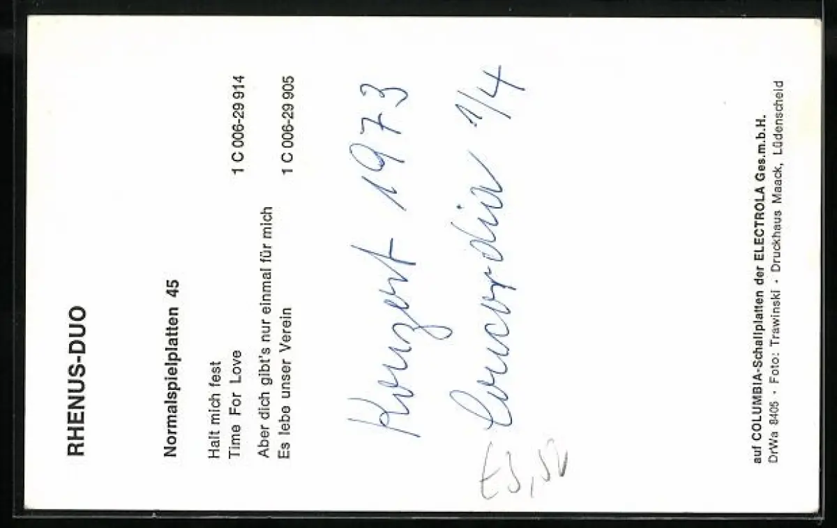 AK Musiker Rhenus-Duo im Partnerlook, Autograph