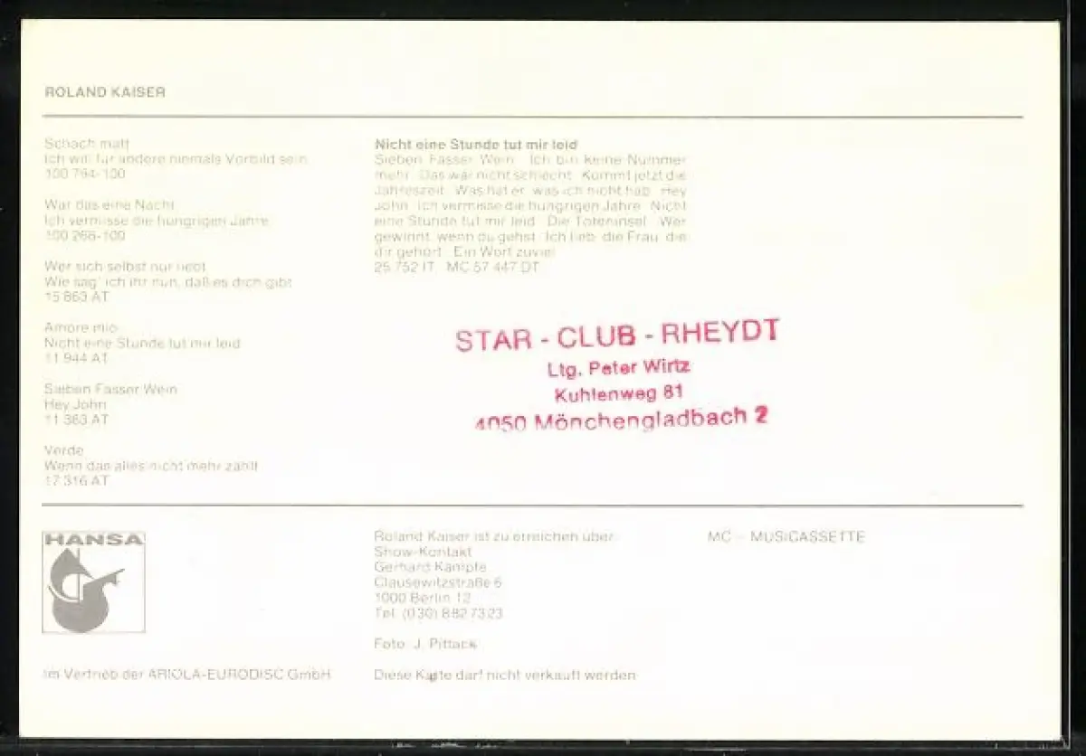AK Musiker Roland Kaiser am Mikrofon, Autograph