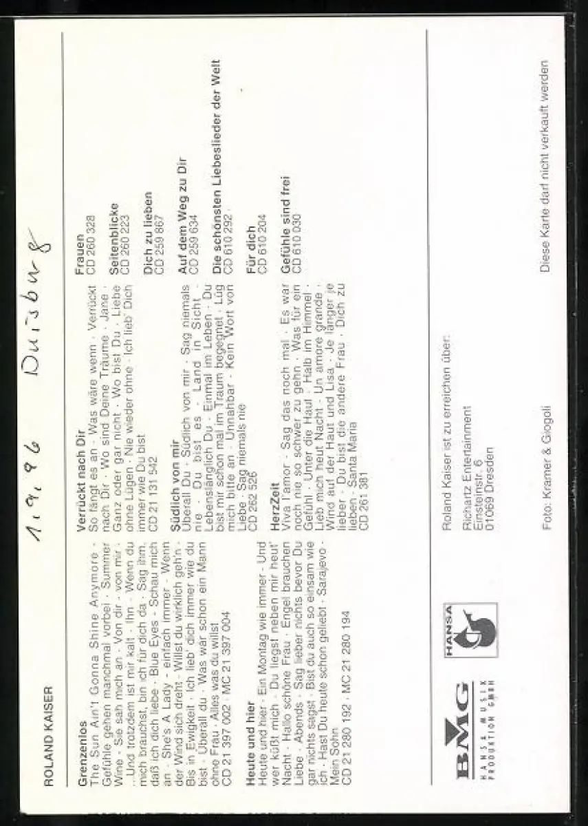 AK Musiker Roland Kaiser im Anzug mit Autograph