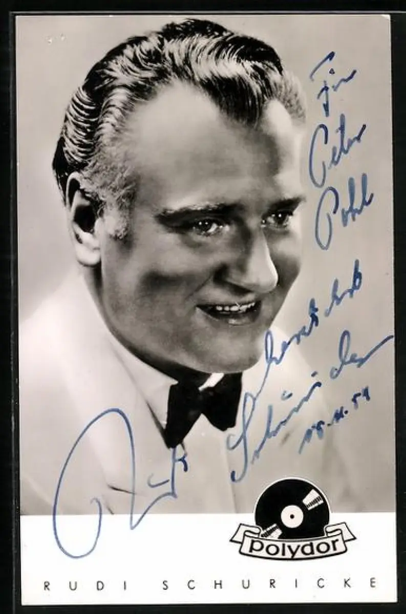 AK Musiker Rudi Schuricke im Anzug mit Fliege, Autograph