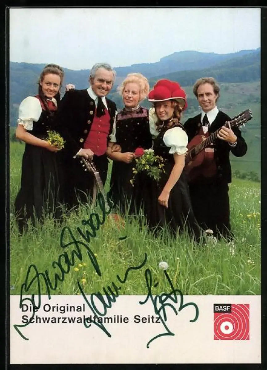 AK Musiker Schwarzwaldfamilie Seitz mit Gitarren auf einem Feld stehend