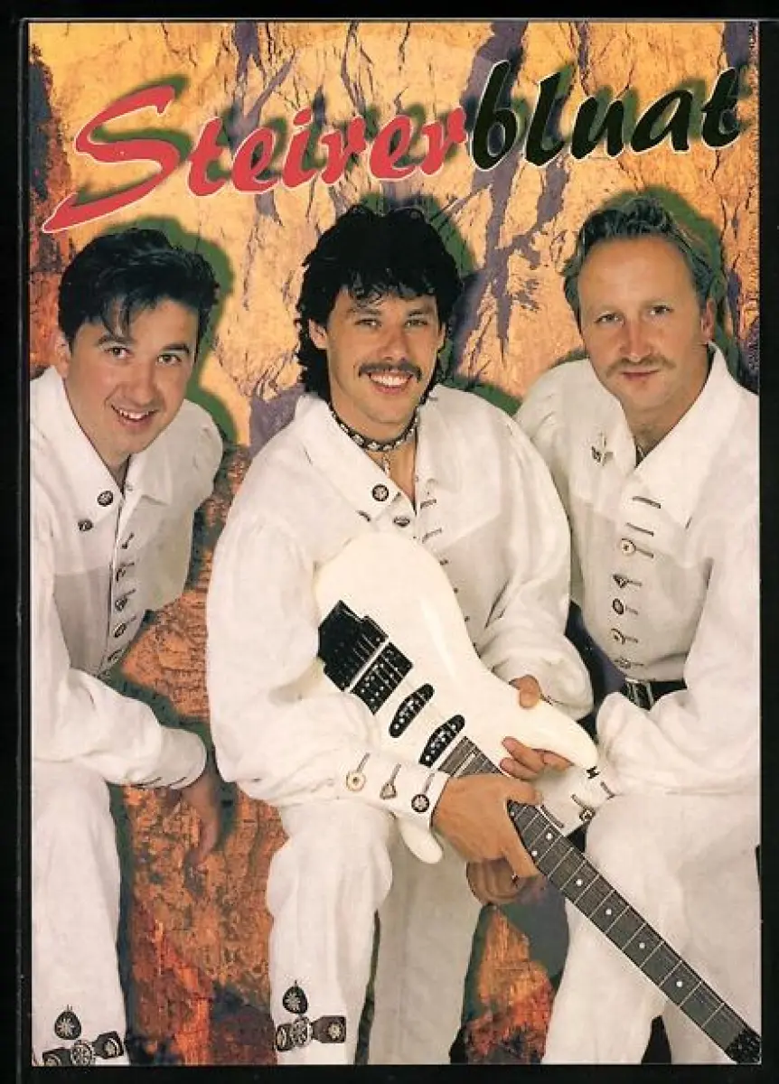 AK Musiker Steirerbluat ganz in weiss mit weisser Gitarre