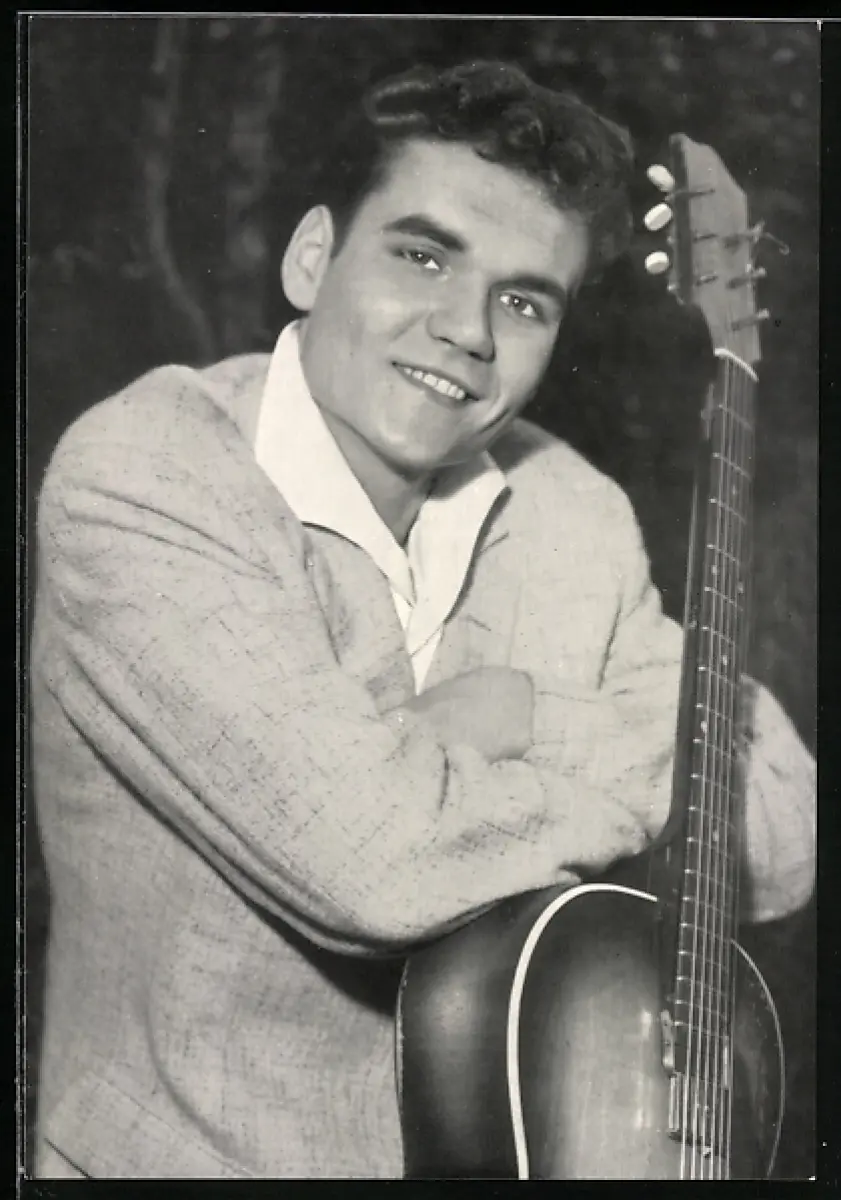 AK Musiker Ted Herold mit Gitarre und verschränkten Armen