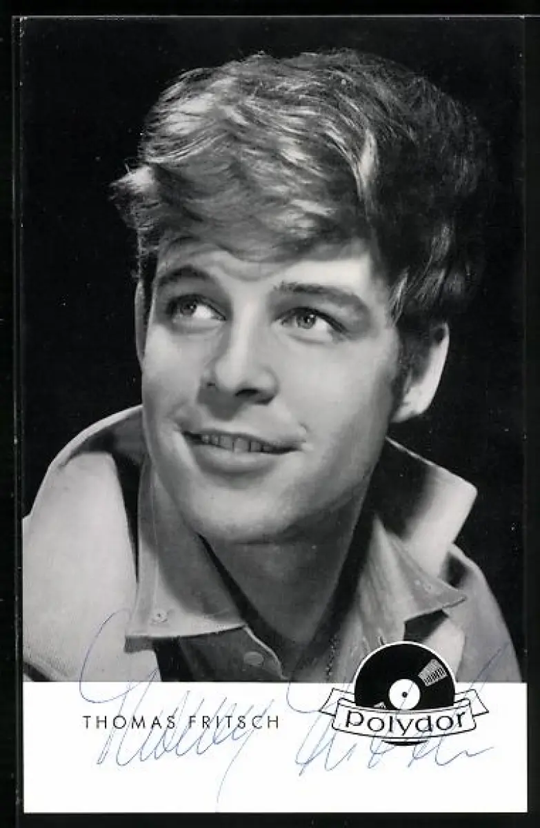AK Musiker Thomas Fritsch lächelnd mit aufgestelltem Kragen, Autograph