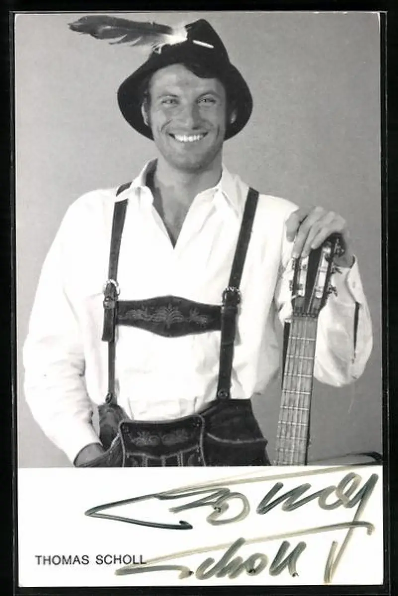 AK Musiker Thomas Scholl in Tracht, Autograph