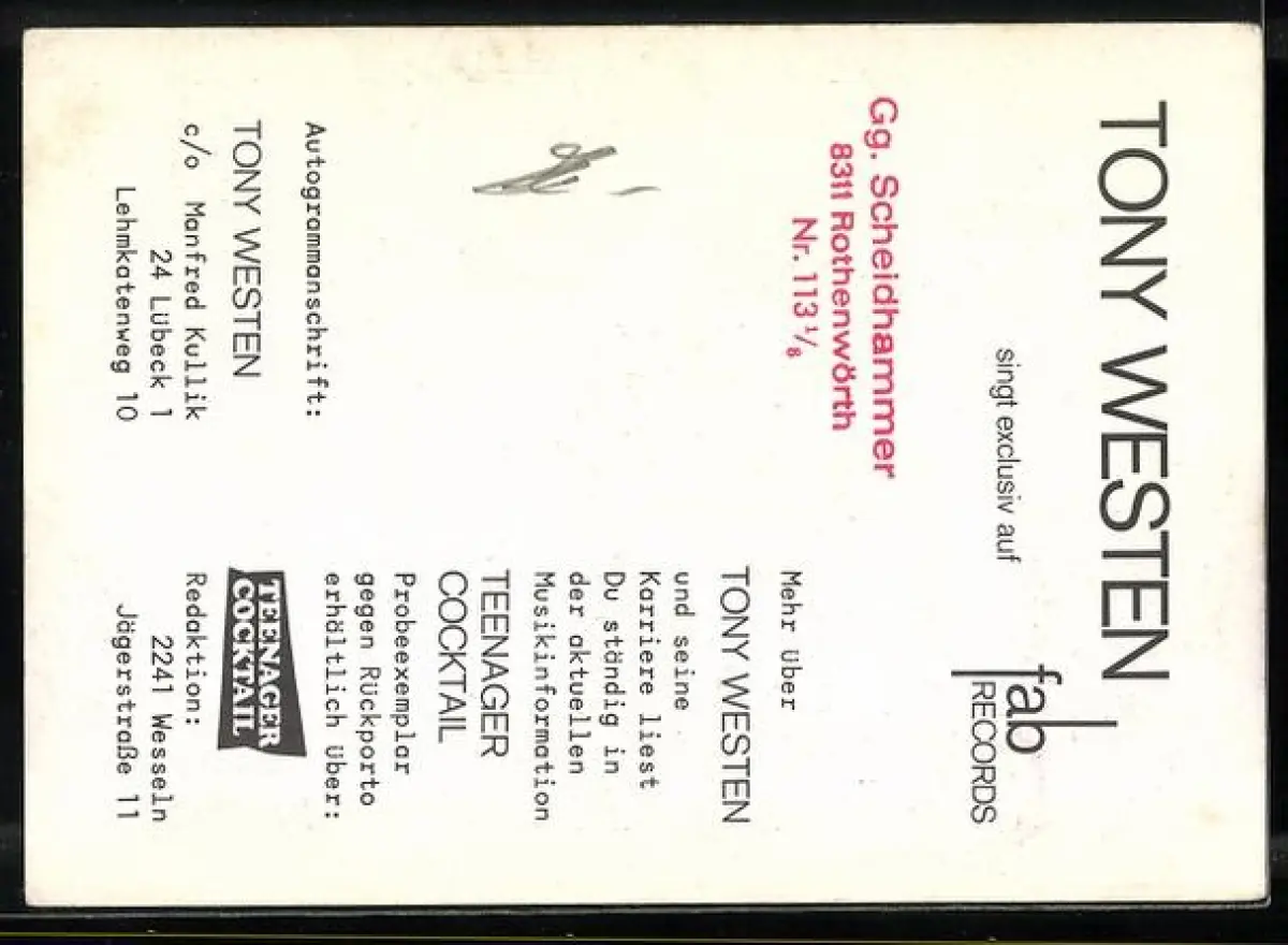 AK Musiker Tony Westen auf einer Wiese fotografiert, Autograph