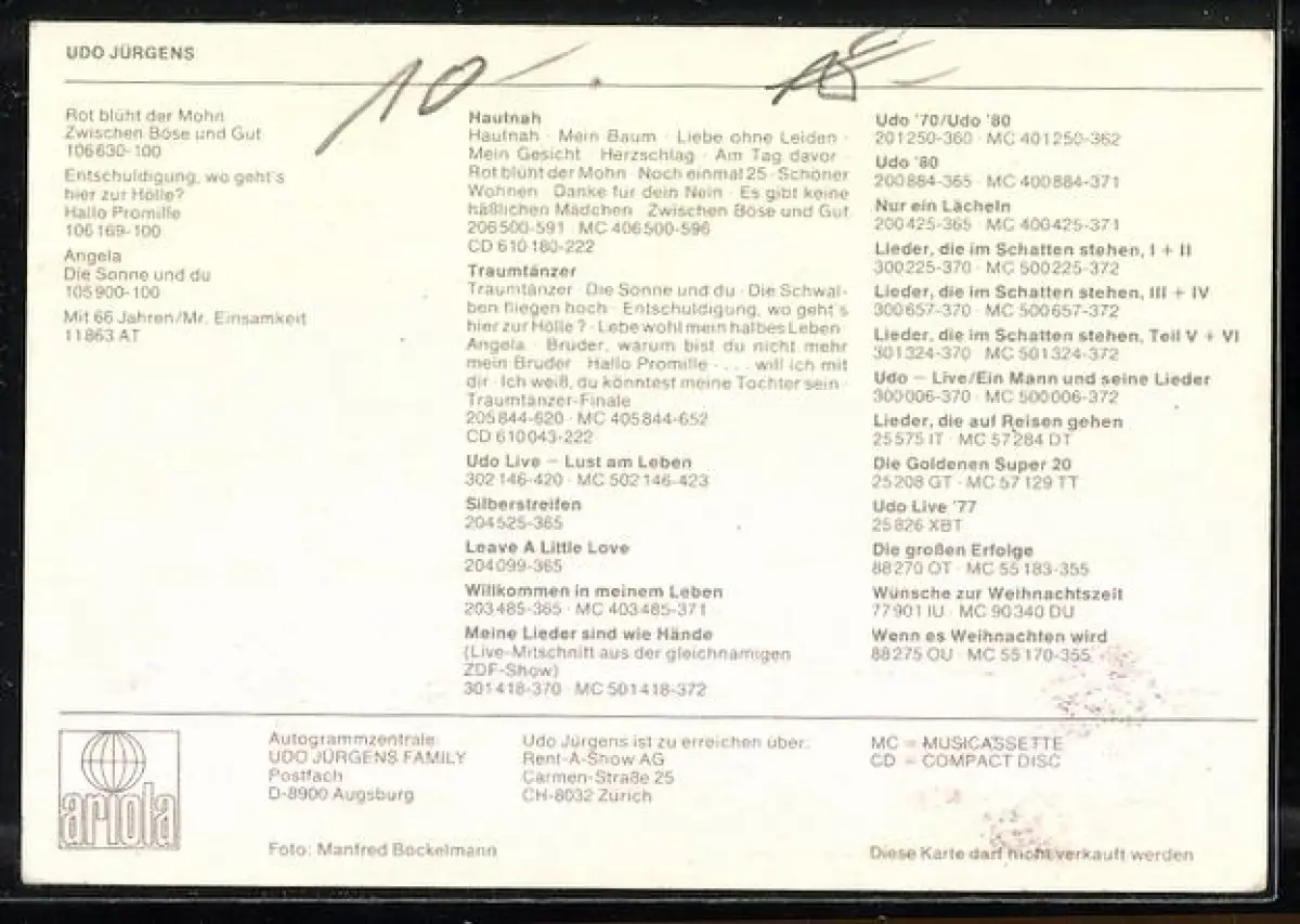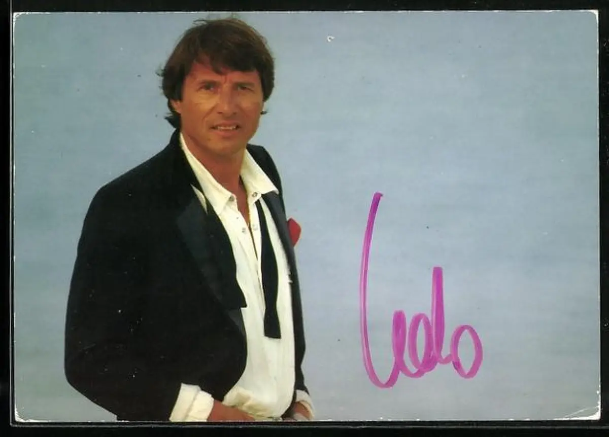 AK Musiker Udo Jürgens in legerer Haltung portraitiert, Autograph