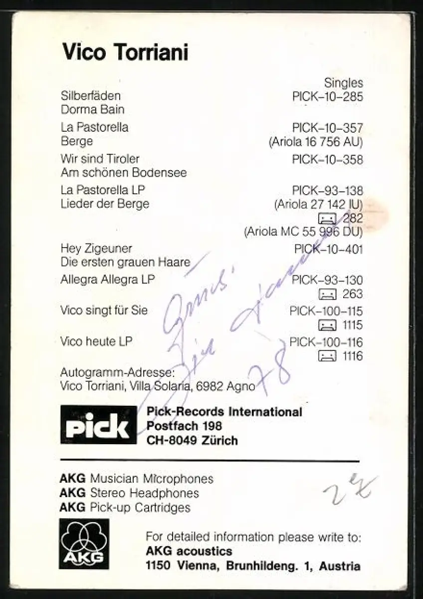 AK Musiker Vico Torriani mit seinem goldenen AKG-Mikrofon