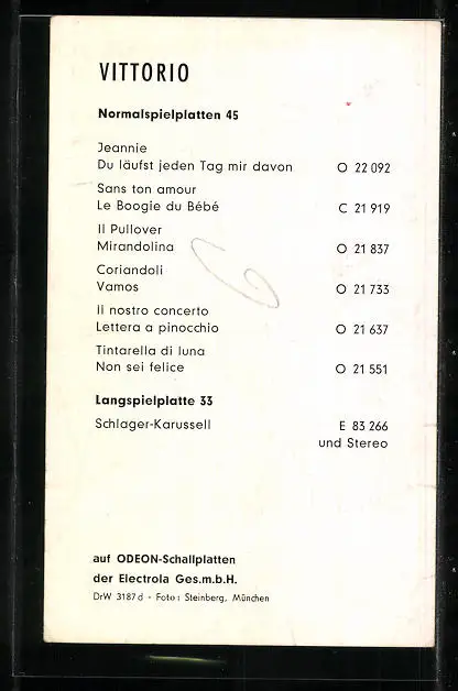 AK Musiker Vittorio im Anzug, Autograph