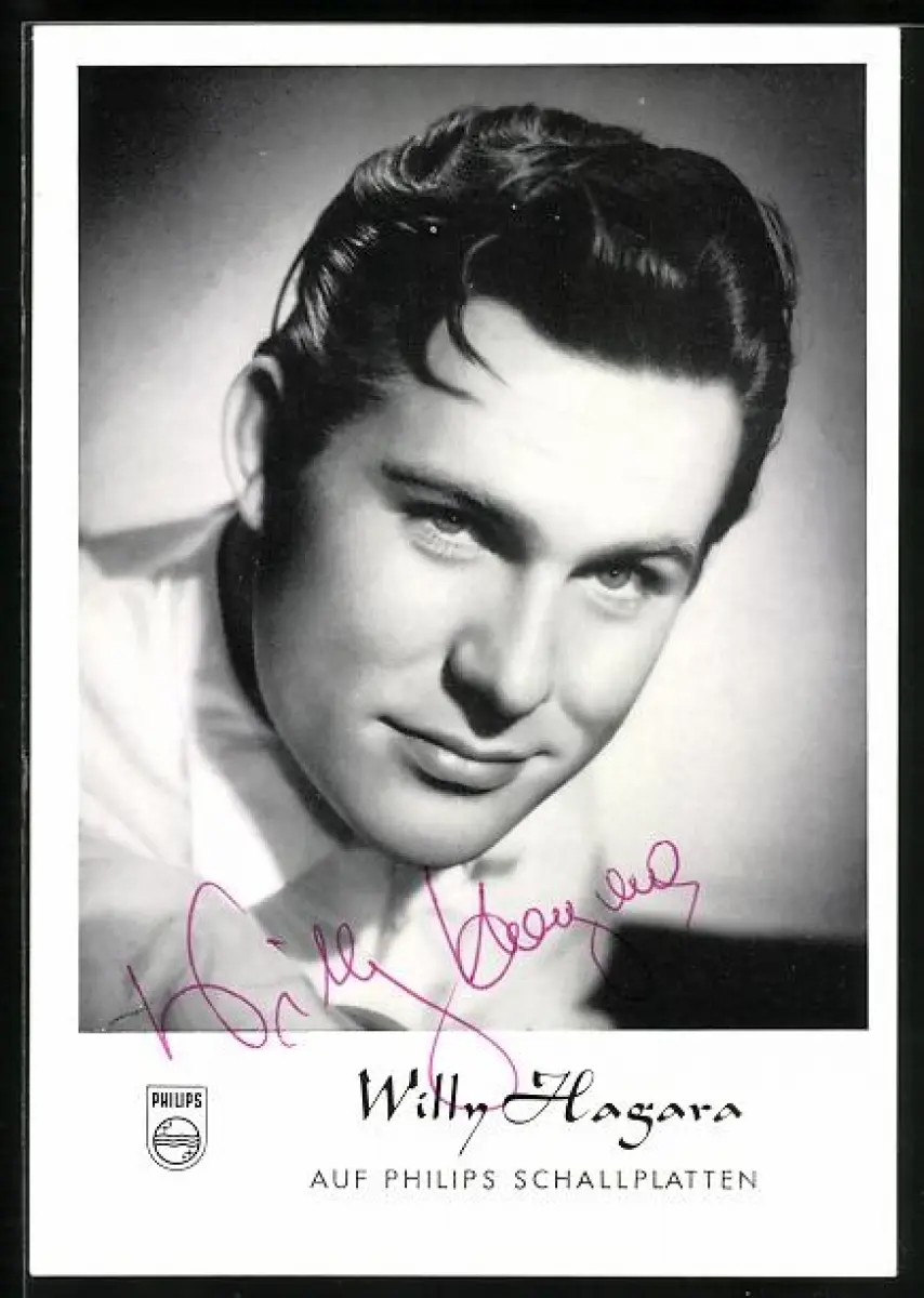 AK Musiker Willy Hagara in die Kamera schauend, Autograph
