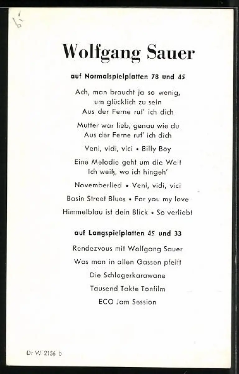 AK Musiker Wolfgang Sauer lächelnd im Porträt, Autograph