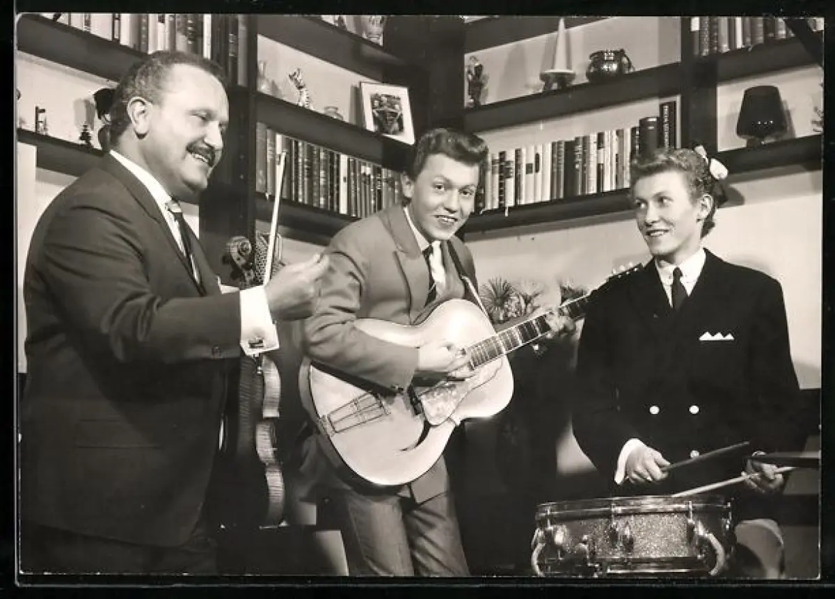 AK Musiker der Band Die drei Spiers mit Instrumenten, Autogramme
