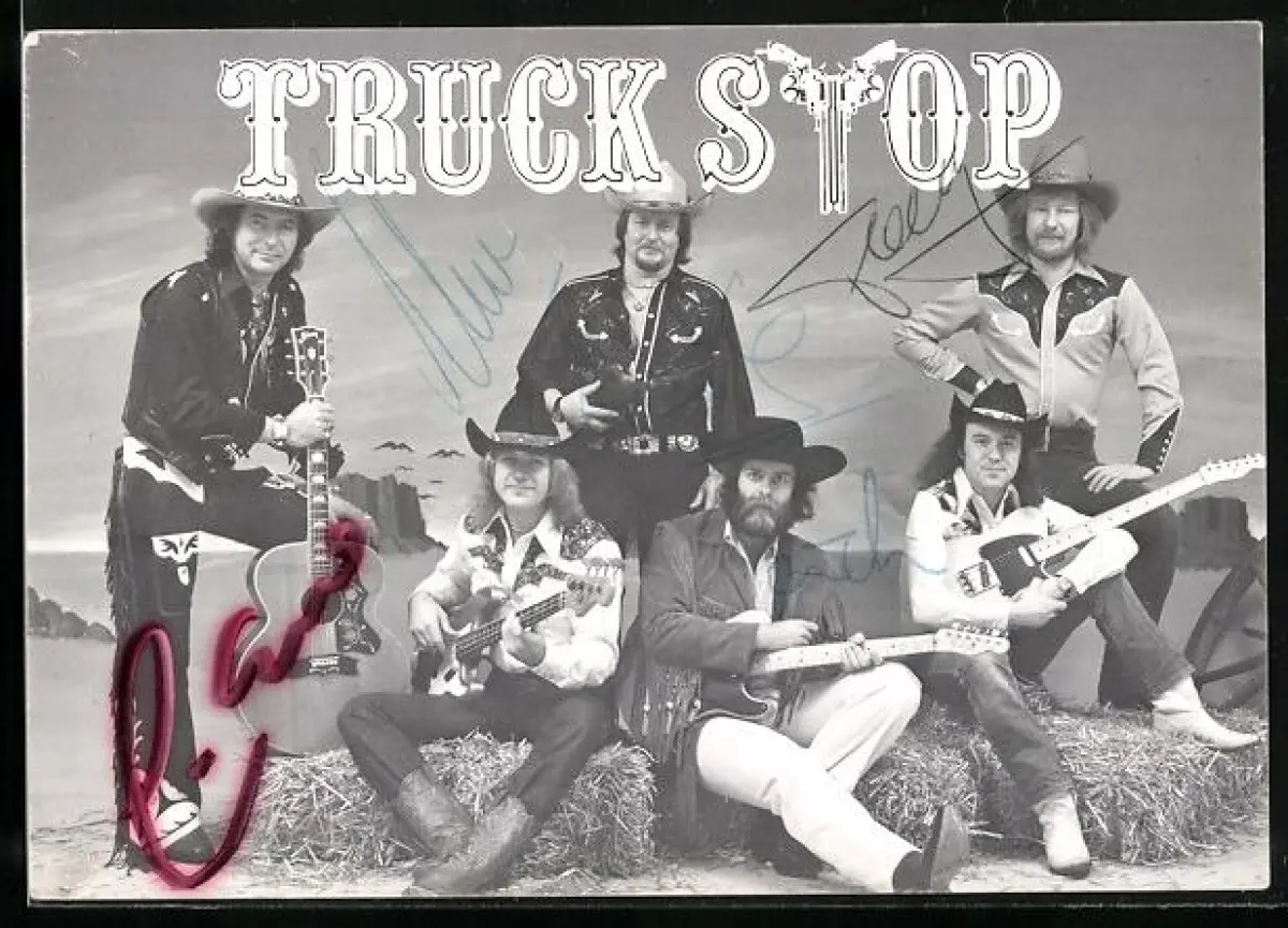 AK Musiker der Band Truck Stop mit Cowboyhüten, Autogramme