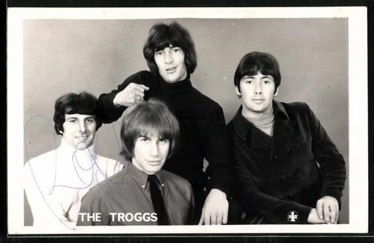 AK Musiker der Band the Troggs lächeln in die Kamera, Autogramm