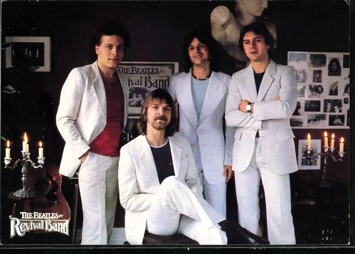 AK Musiker der Beatles Revival Band in weissen Anzügen