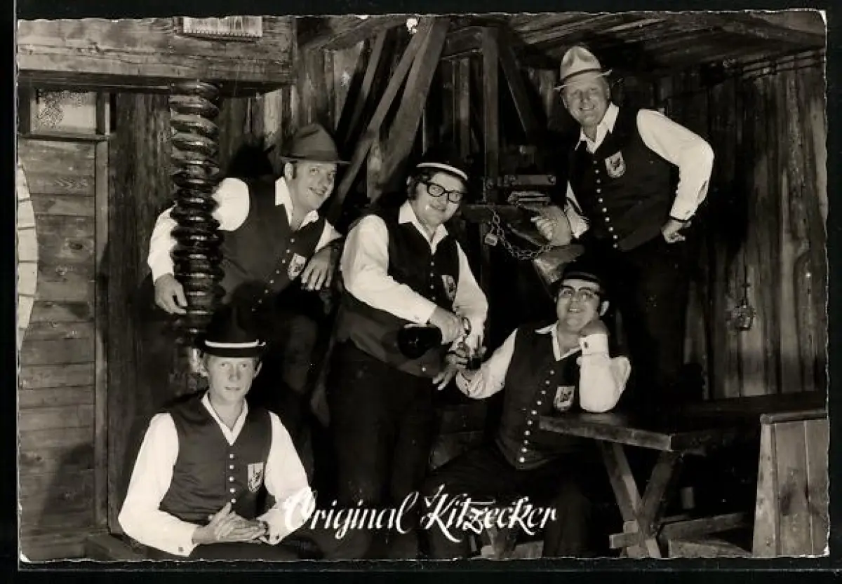 AK Musiker der Original Kitzecker in Trachtenkleidung, Autogramme