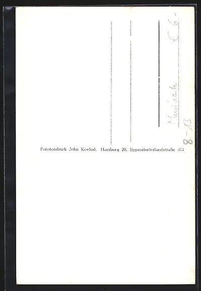 Personenbezogene Daten auf der Rückseite der Karte wurden durch blauen Textmarker unkenntlich gemacht. Die blauen Stellen sind auf die Vorderseite durchgeweicht und wirken sich negativ auf das Postkartenfoto aus