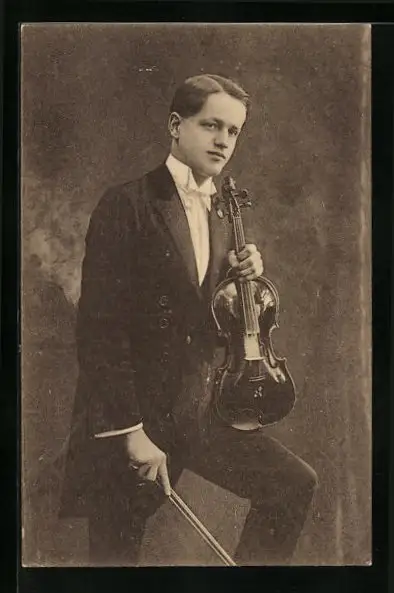 AK Musiker mit seiner Geige in der Hand, im Anzug abgelichtet