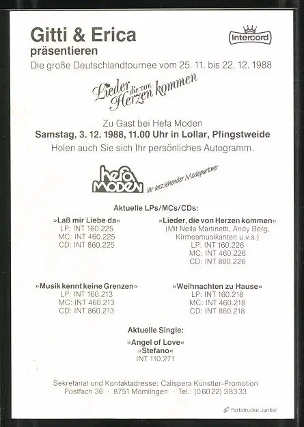AK Musikerduo Gitti & Erica, mit Autograph