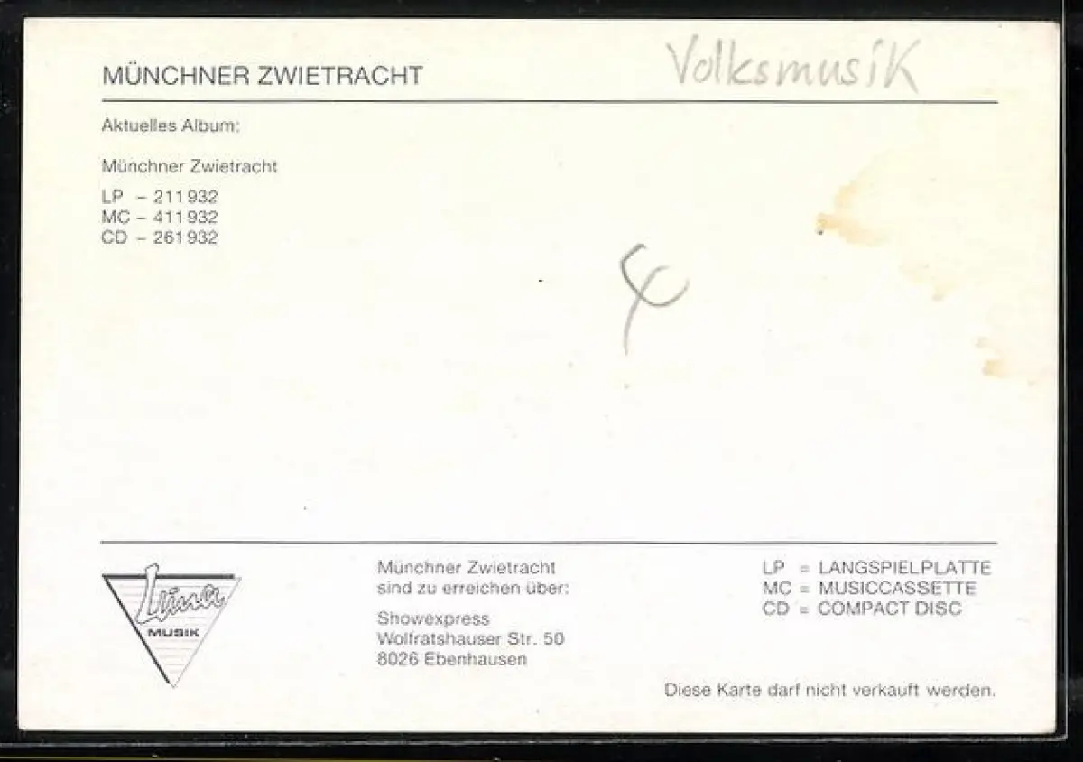AK Musikergruppe Münchner Zwietracht mit ihren Instrumenten, Autographen