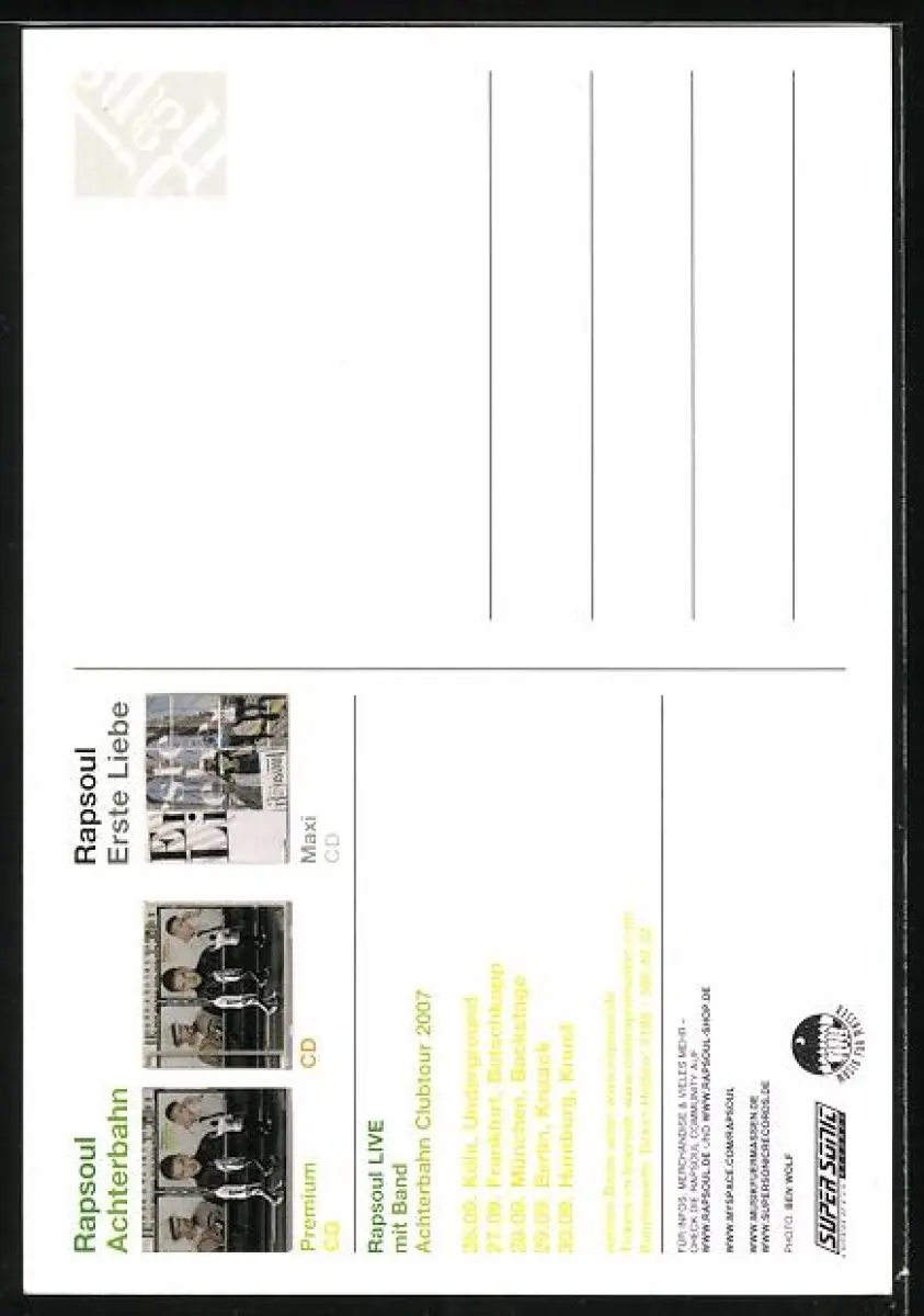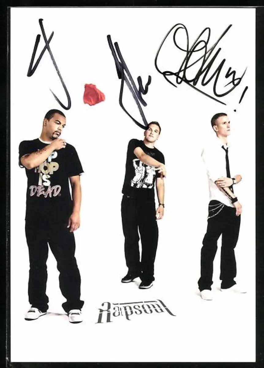 AK Musikergruppe Rapsoul vor hellem Hintergrund, Autograph