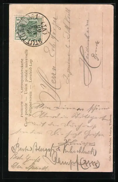 alte Ansichtskarte, gelaufen 1908, Stempelspur, guter Zustand