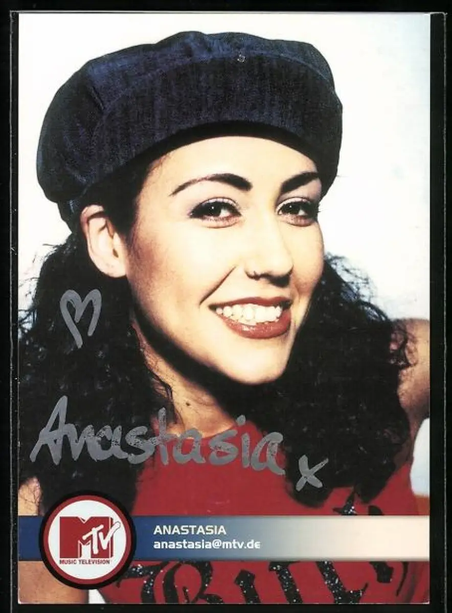 AK Musikerin Anastasia lächelnd im Porträt, Autograph