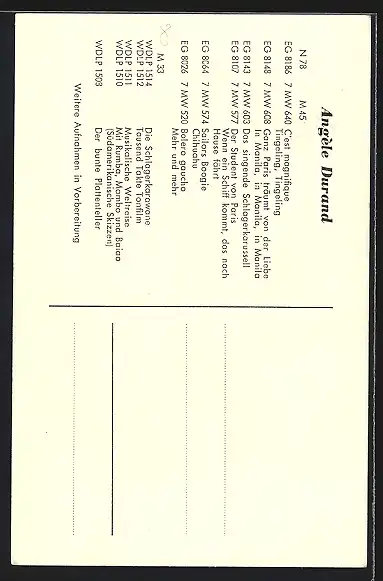 AK Musikerin Angèle Durand mit bezauberndem Lächeln