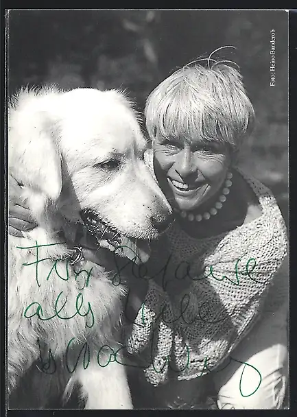 AK Musikerin Barbara Rütting mit Hund, Autograph