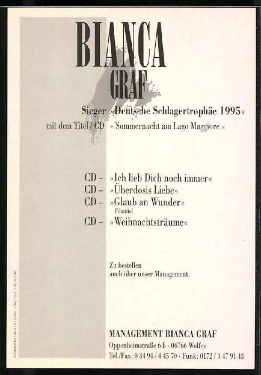 AK Musikerin Bianca Graf singend im Porträt, Autograph