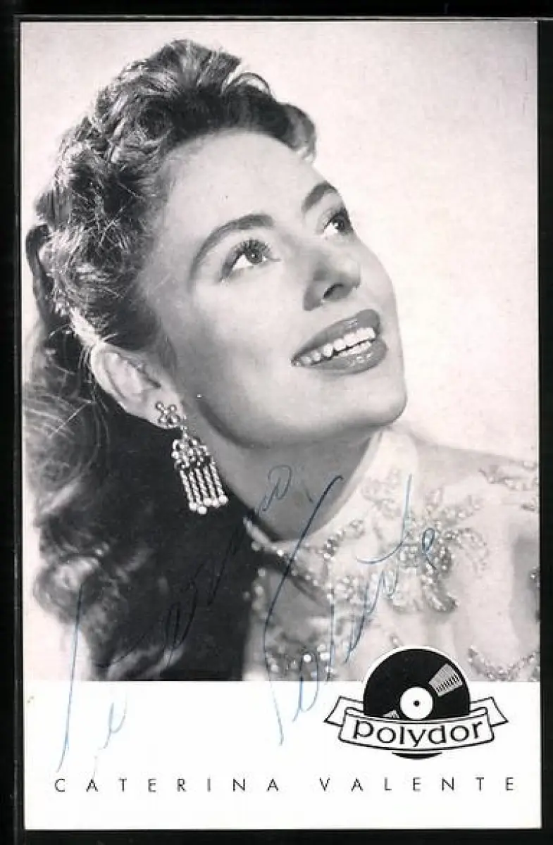 AK Musikerin Catarina Valente lächelnd im Abendkleid, Autograph