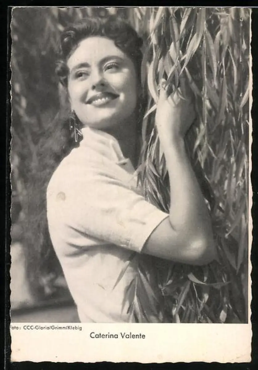 AK Musikerin Caterina Valente lächelnd an Trauerweide