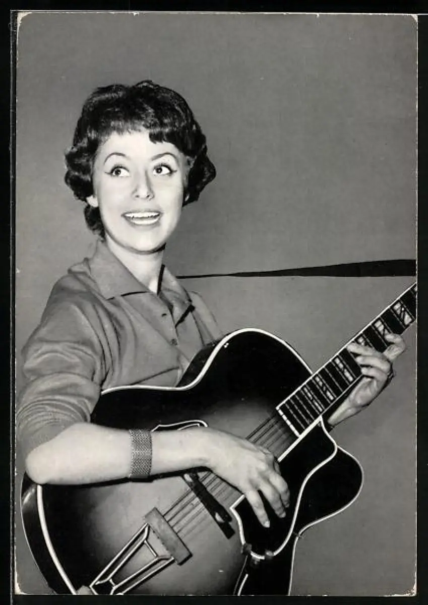 AK Musikerin Caterina Valente mit Gitarre beim Auftritt
