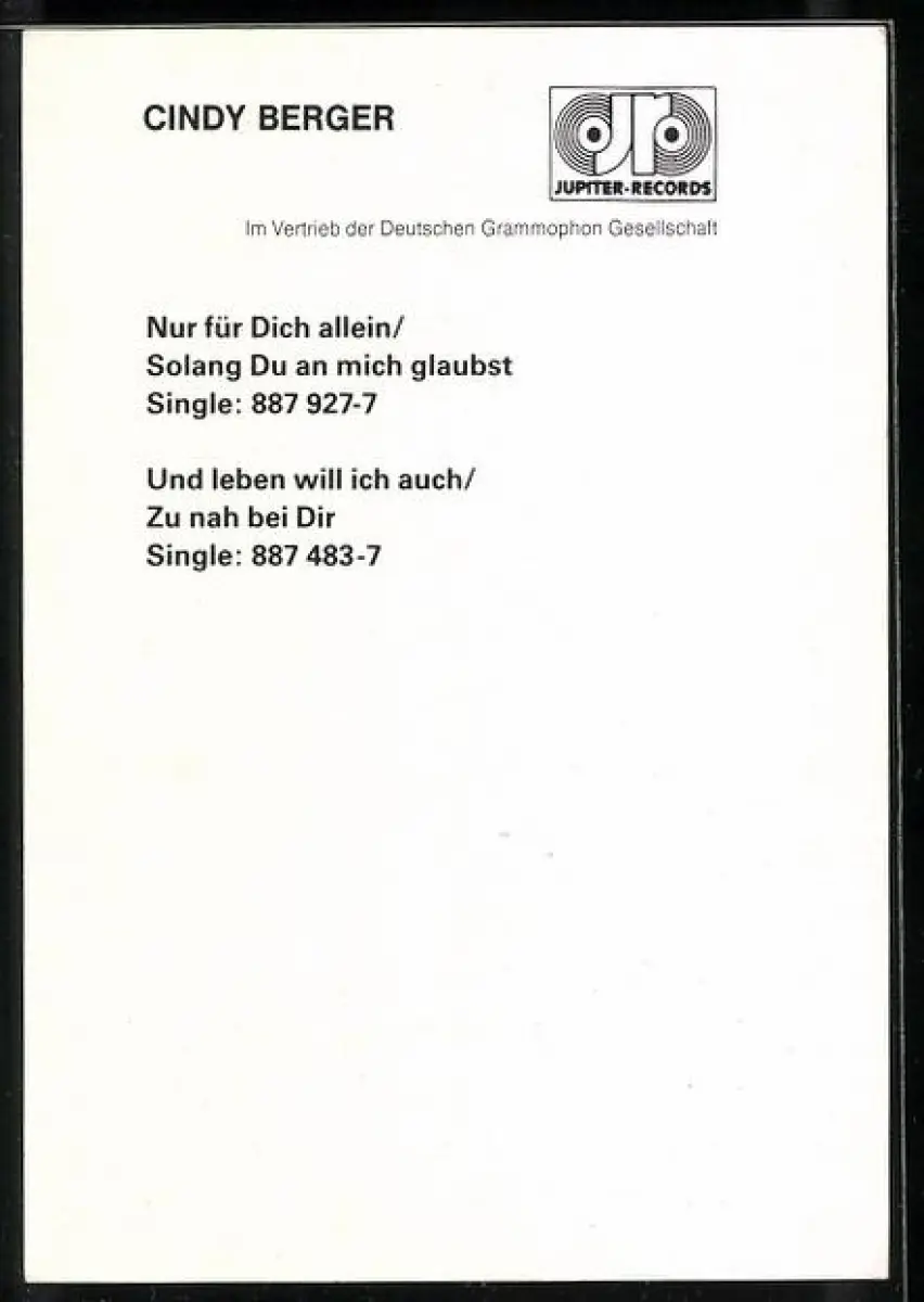 AK Musikerin Cindy Berger mit Halskette, Autograph