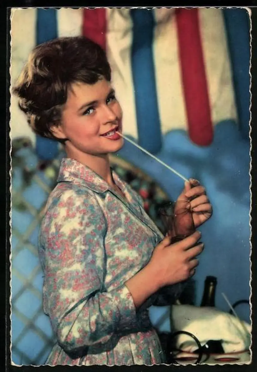 AK Musikerin Conny Froboes in geblümtem Kleid