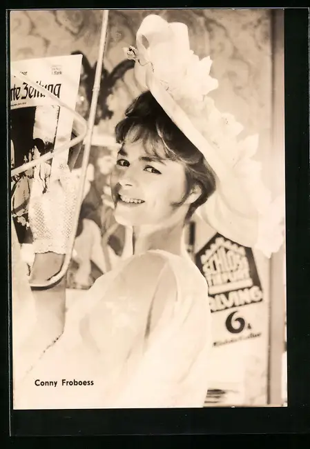 AK Musikerin Conny Froboess mit Handschuhen und weissem Hut