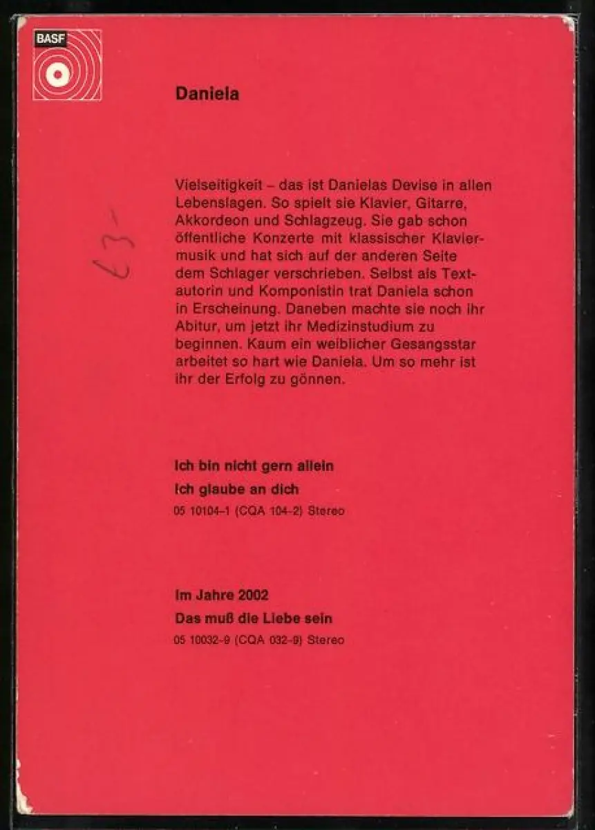 AK Musikerin Daniela mit toller Frisur nachdenklich blickend, Autograph